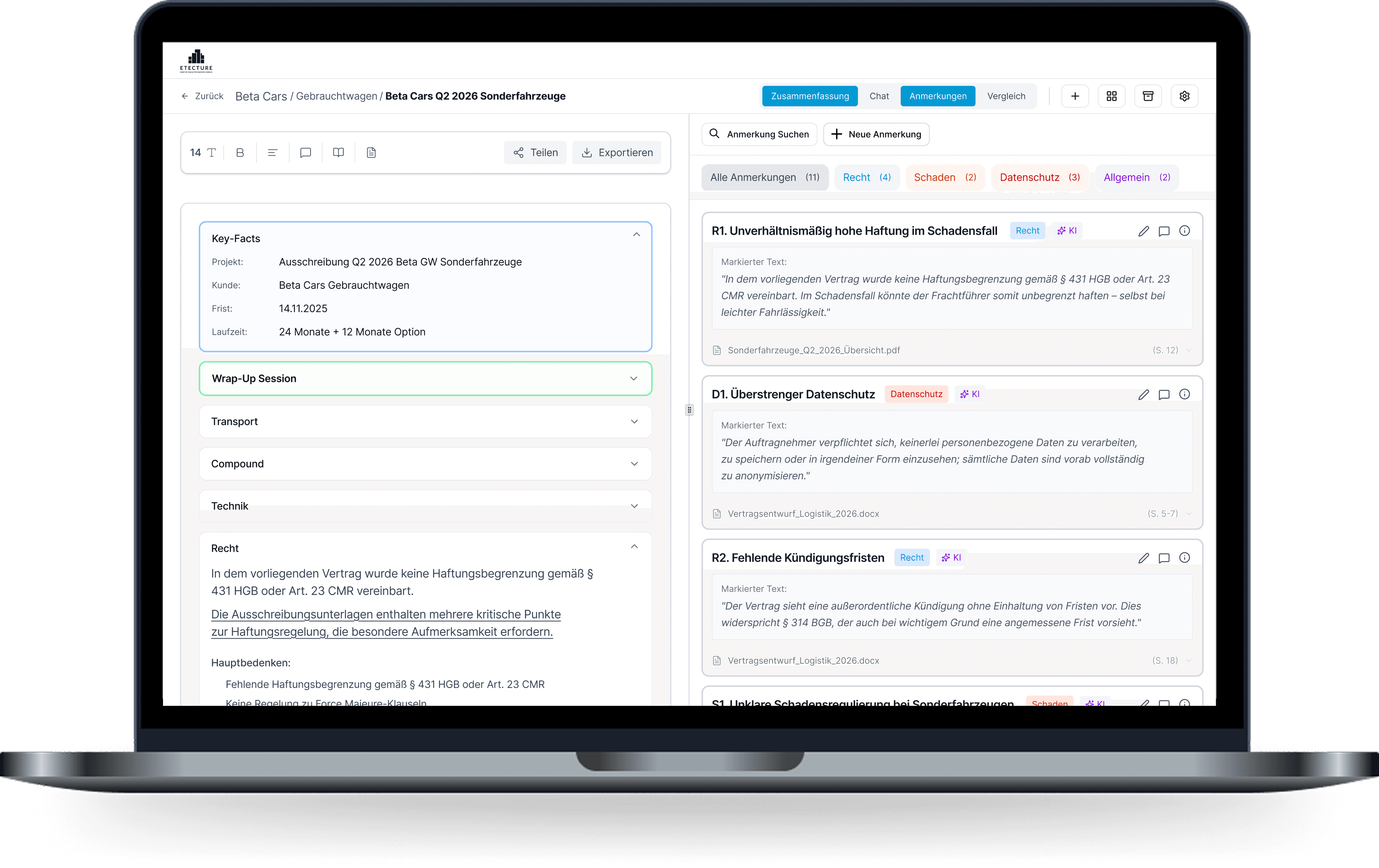 Analyse von Vertrags- und Ausschreibungsdokumenten mit wenigen Klicks
