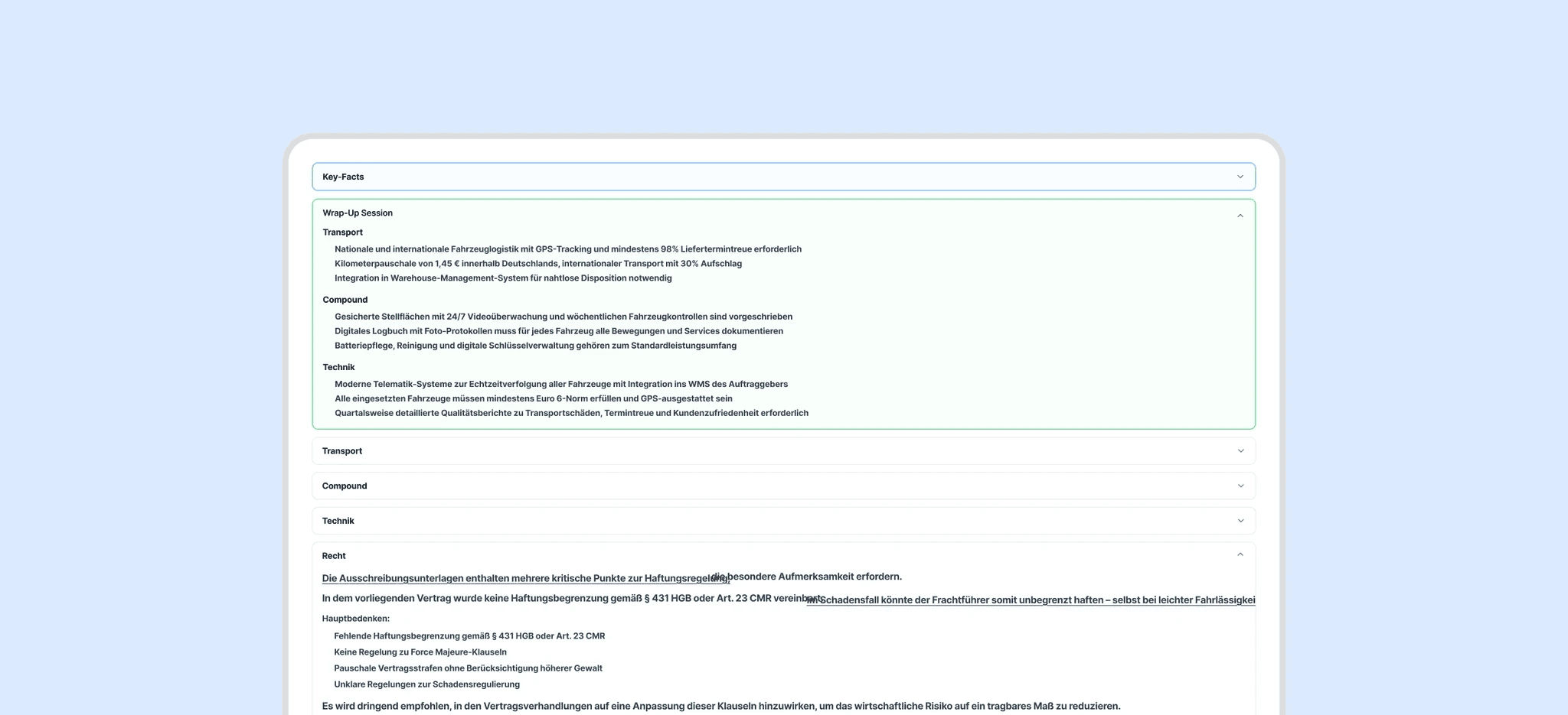 Widersprüche und Risiken werden anhand hinterlegter Vorgaben erkannt.